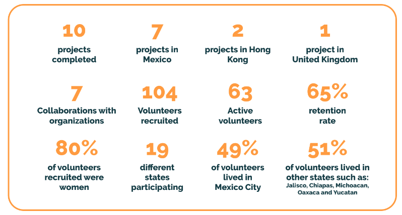 Volunteer Retention Rate (versus average of 65% according to Americorps and 50% according to makesense re_action data).